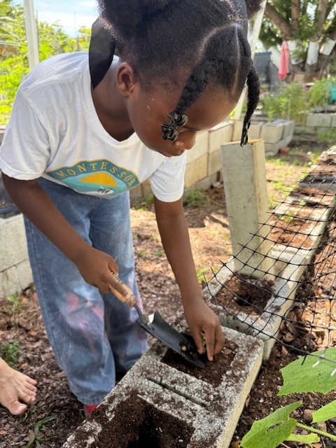 3. A Spanish Lime friend works in the Community Garden plot at the Marc House on a weekly Learning Expedition.