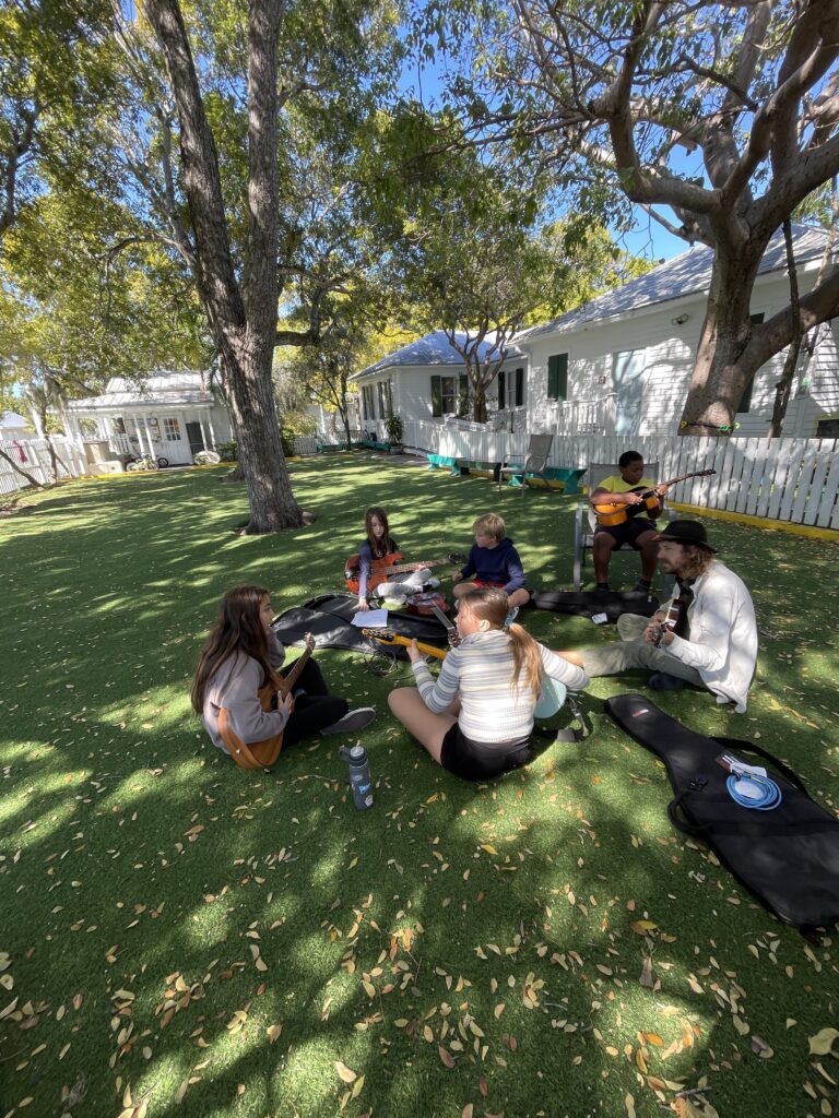 2. Cocoplum Friends in a Guitar lesson with Mr. Jeff, our resident rock star (& Jasmine’s Dad)