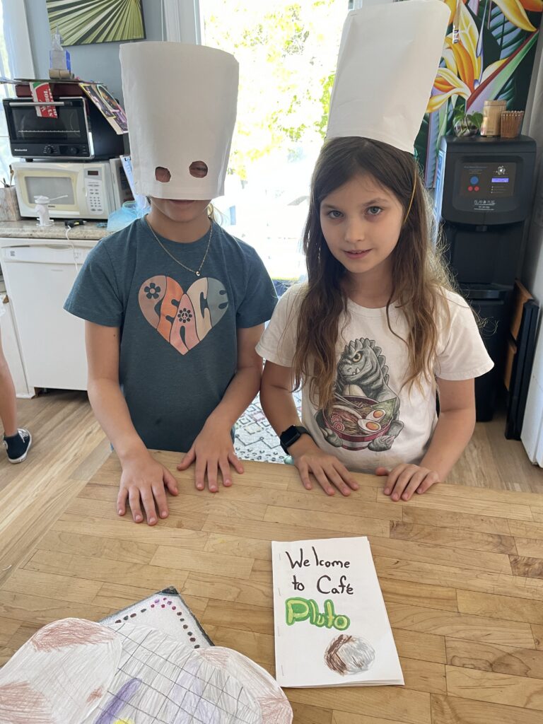 - Cocoplum (Upper Elementary) students during their “Show My Learning – Outer Planets” presenting Cafe Pluto.