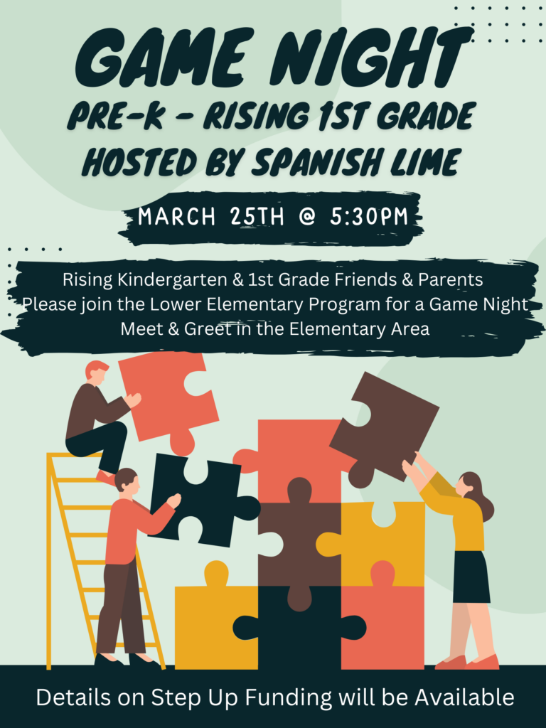 Wednesday, March 25: Rising Kindergarten/Lower Elementary Game Night, 5:30pm