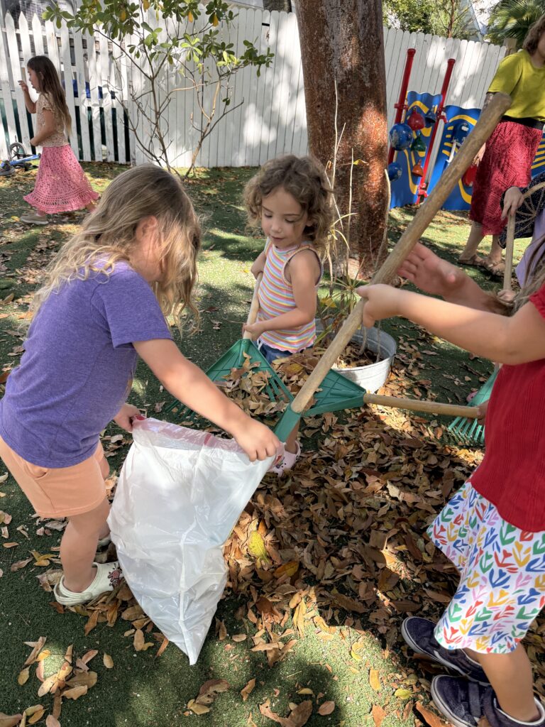2. Primary friends work together to do a little landscaping on the primary playground