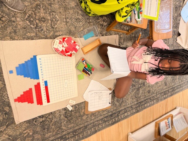 3. A Spanish Lime (Lower Elementary) student maintains focus while working on a complicated math lesson